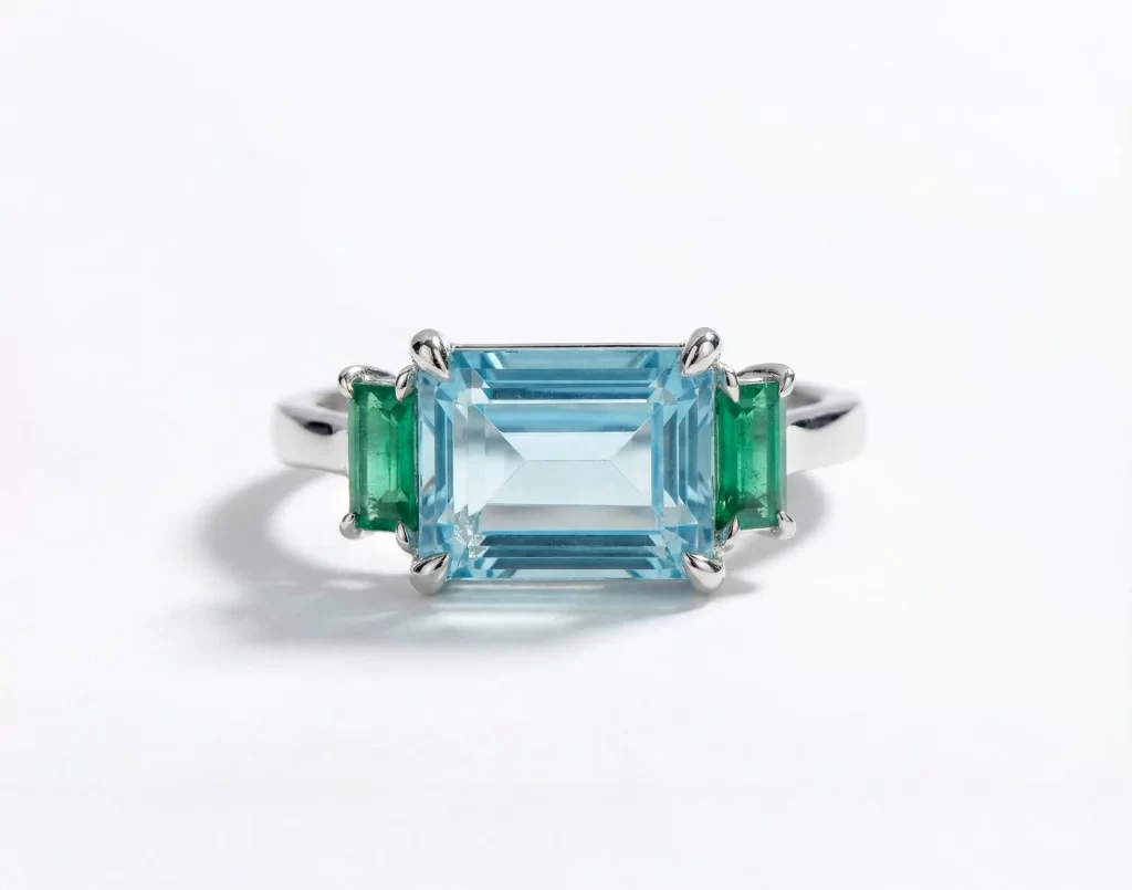 East-west settings rotate the gemstone horizontally across the band, instantly modernizing classic shapes like emerald, oval, and marquise cuts.