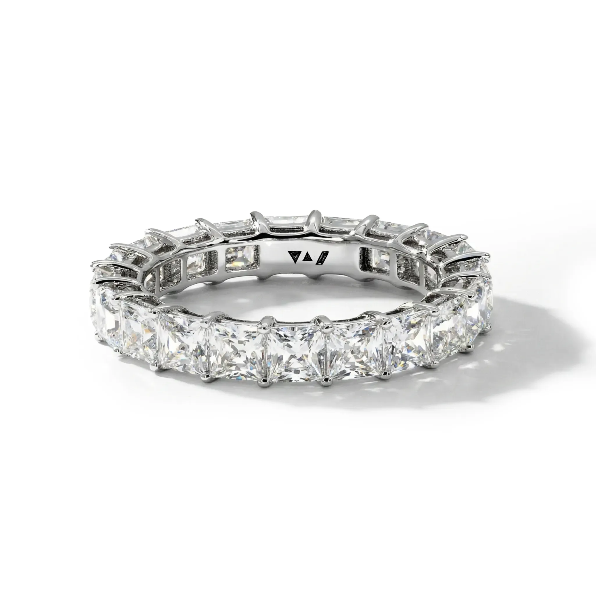 Princess Square Eternity Ring A bold circle of princess-cut eco-diamonds, set edge-to-edge for clean lines and modern brilliance. Sharp, structured, and endlessly radiant—eternity with edge.